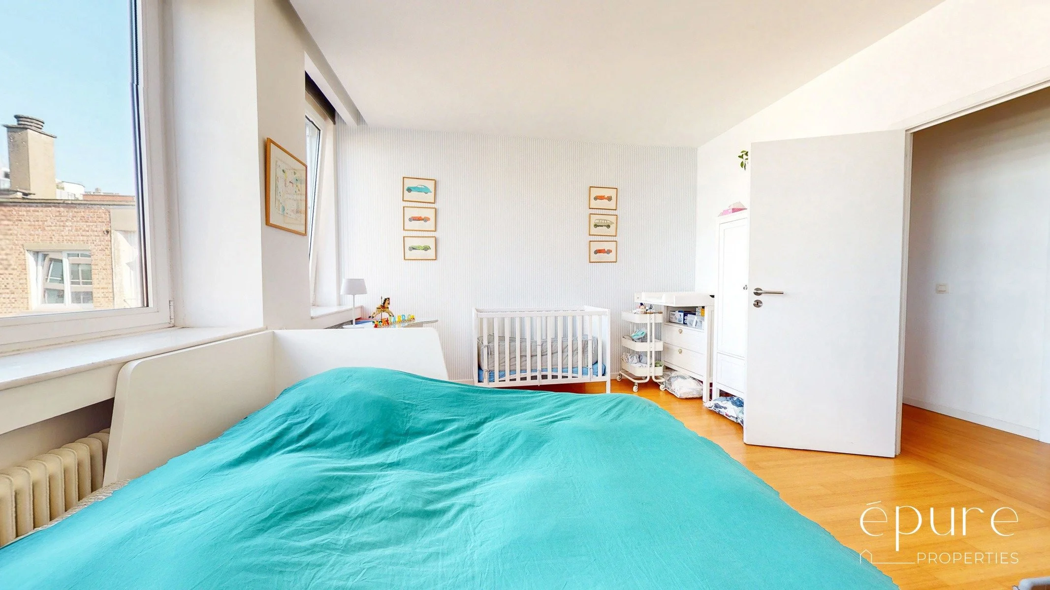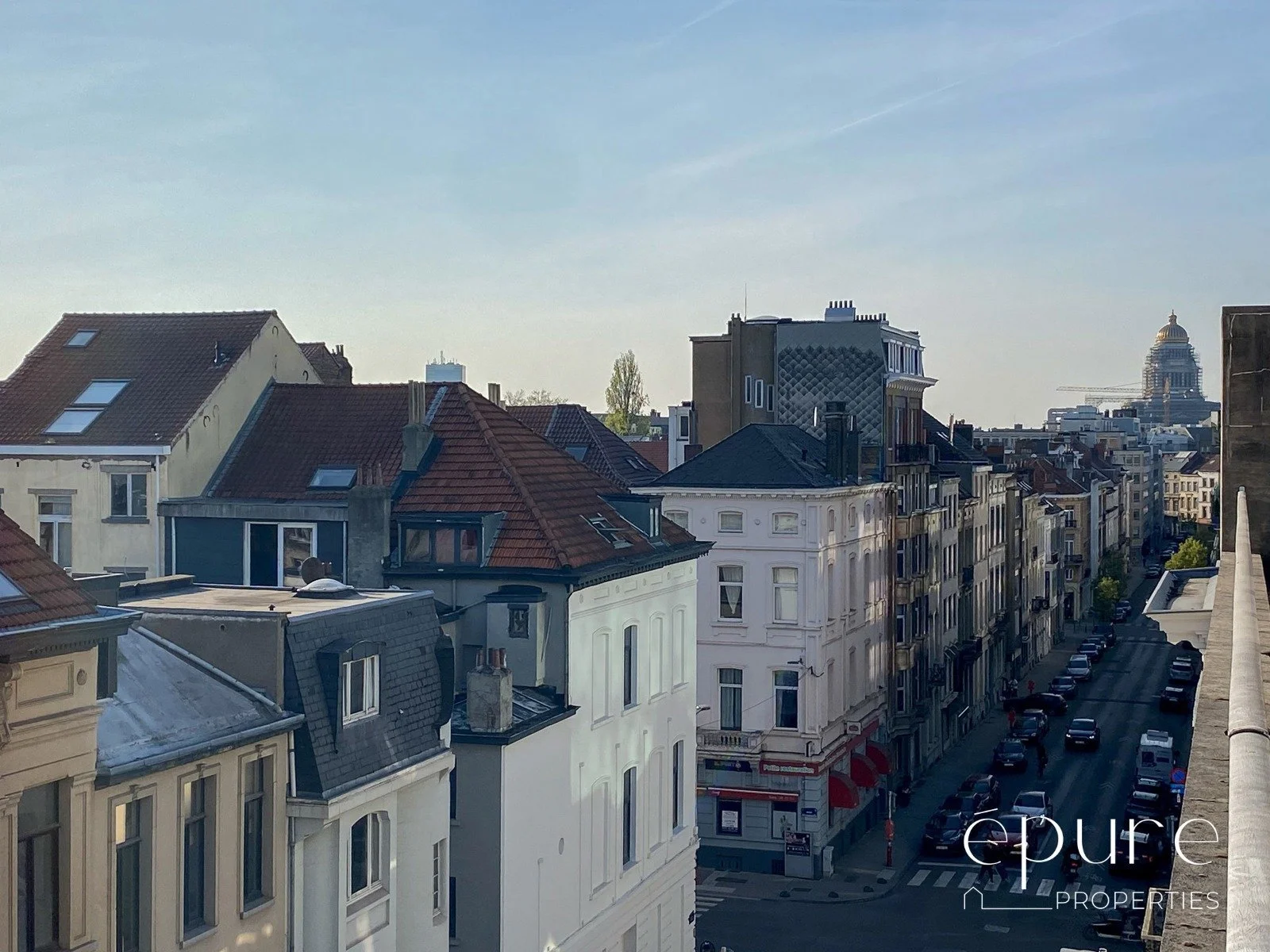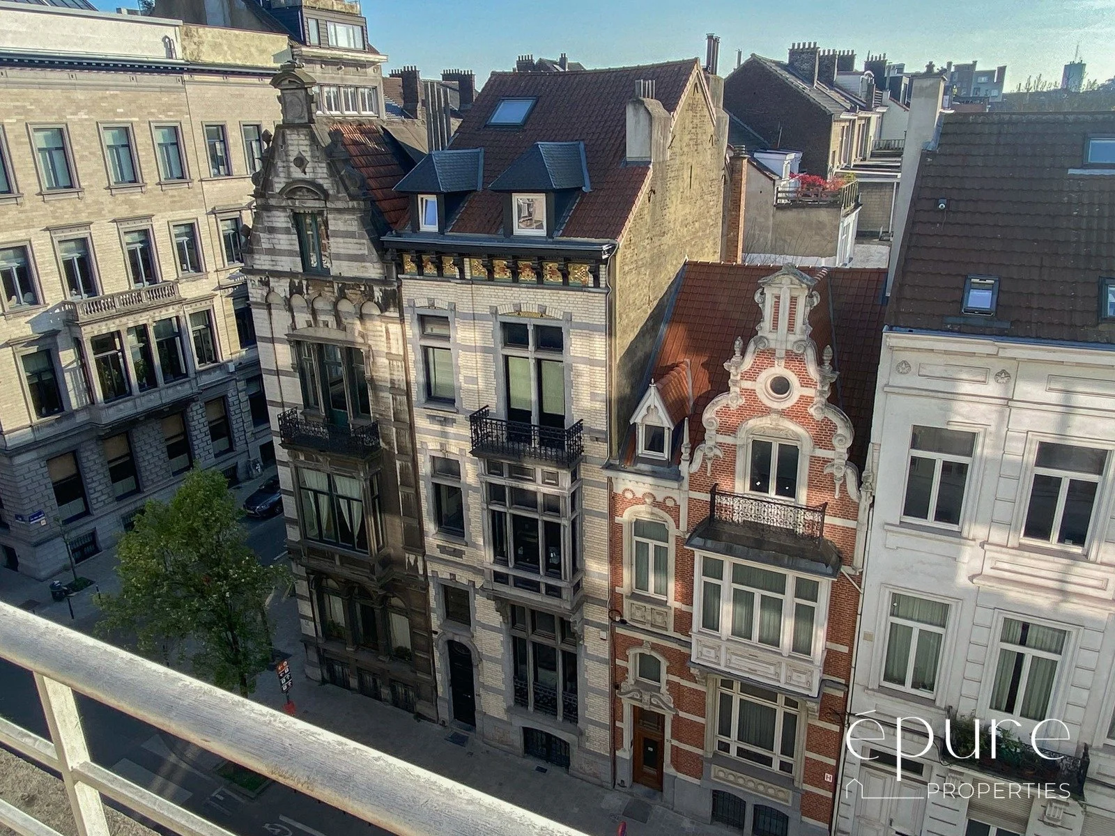 Dans une rue typique, appartement situé au cinquième et dernier étage d’un immeuble en pierre de Bourgogne construit en 1964. L’appartement, complètement rénové, mesure 159m2 (selon PEB).