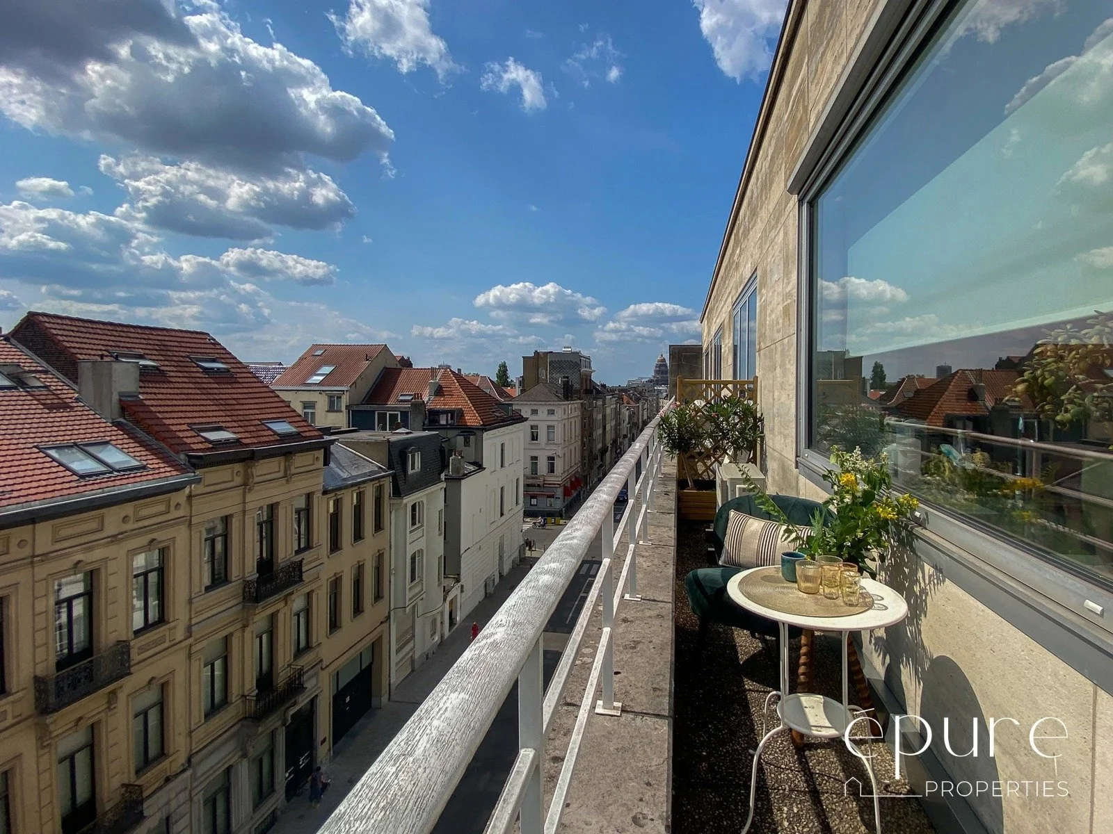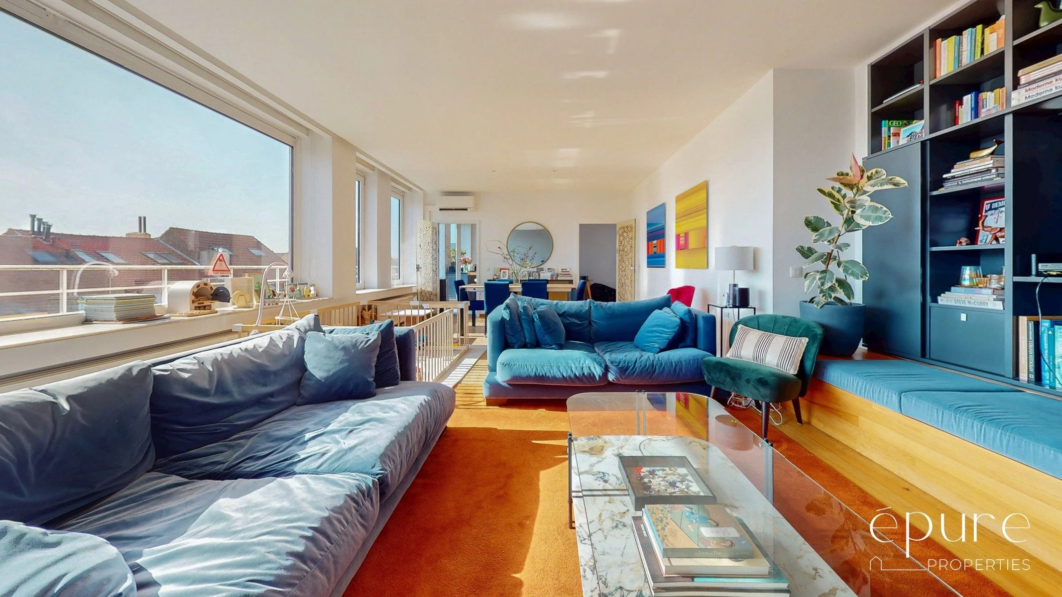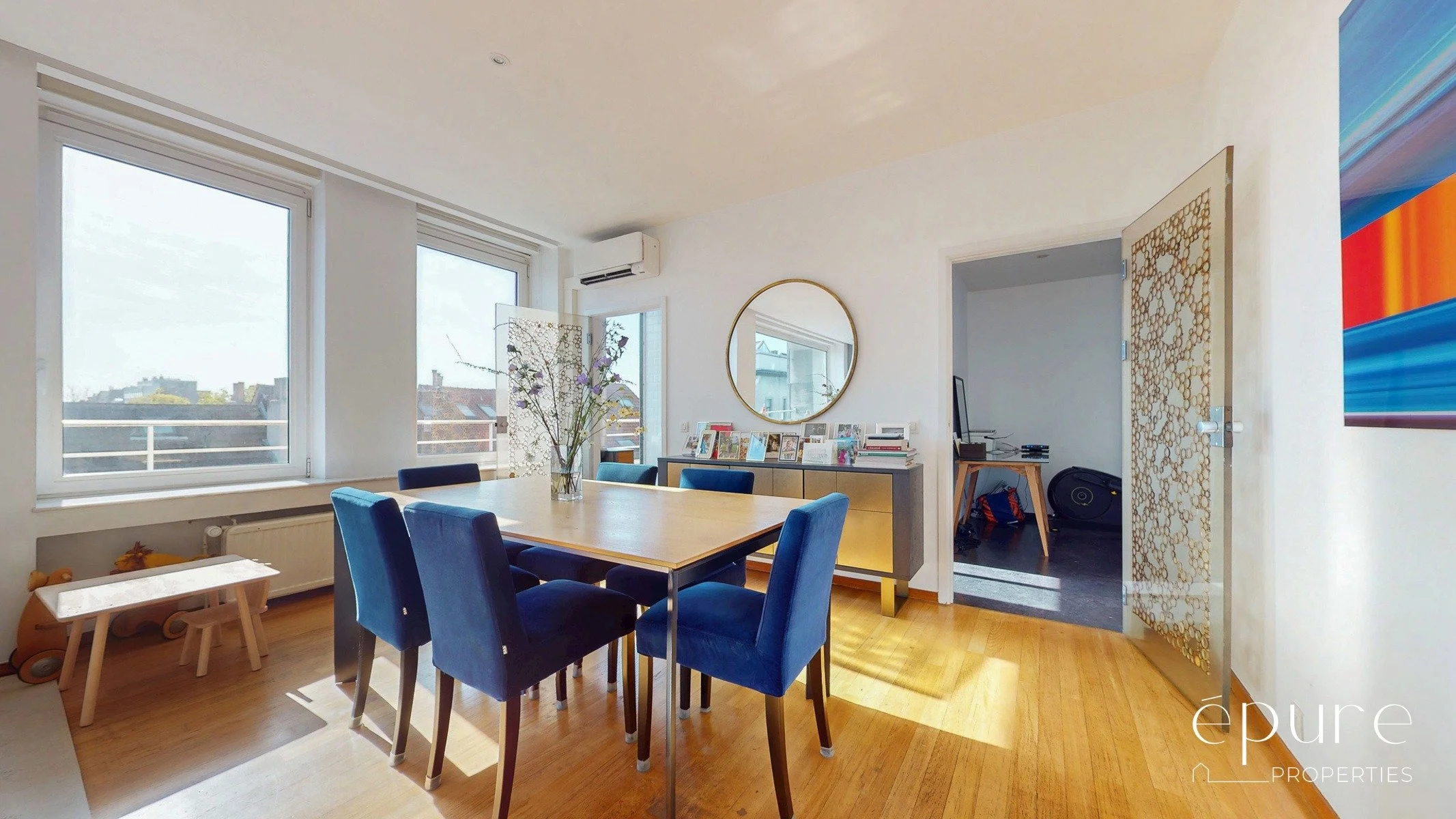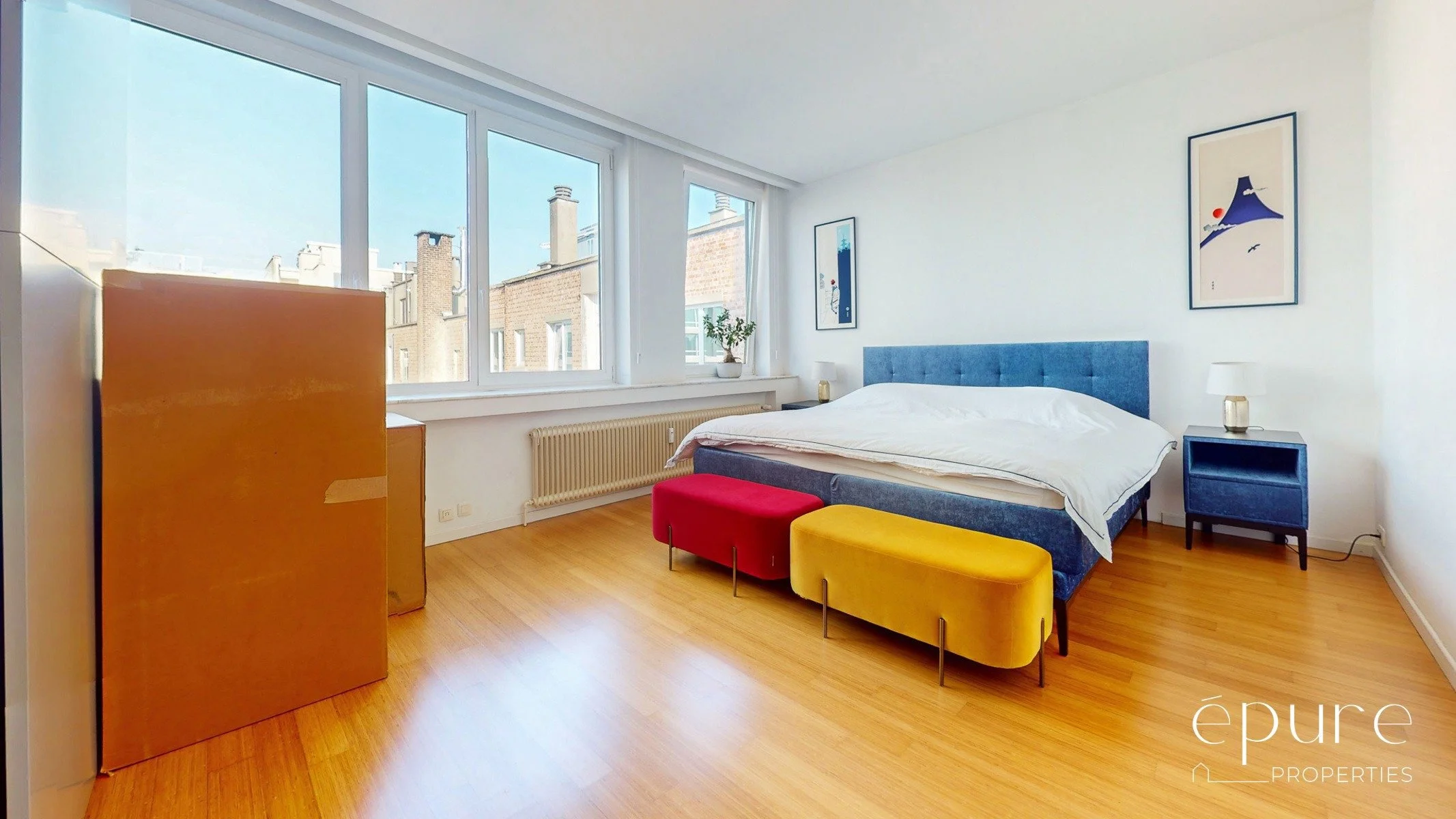 Dans une rue typique, appartement situé au cinquième et dernier étage d’un immeuble en pierre de Bourgogne construit en 1964. L’appartement, complètement rénové, mesure 159m2 (selon PEB).