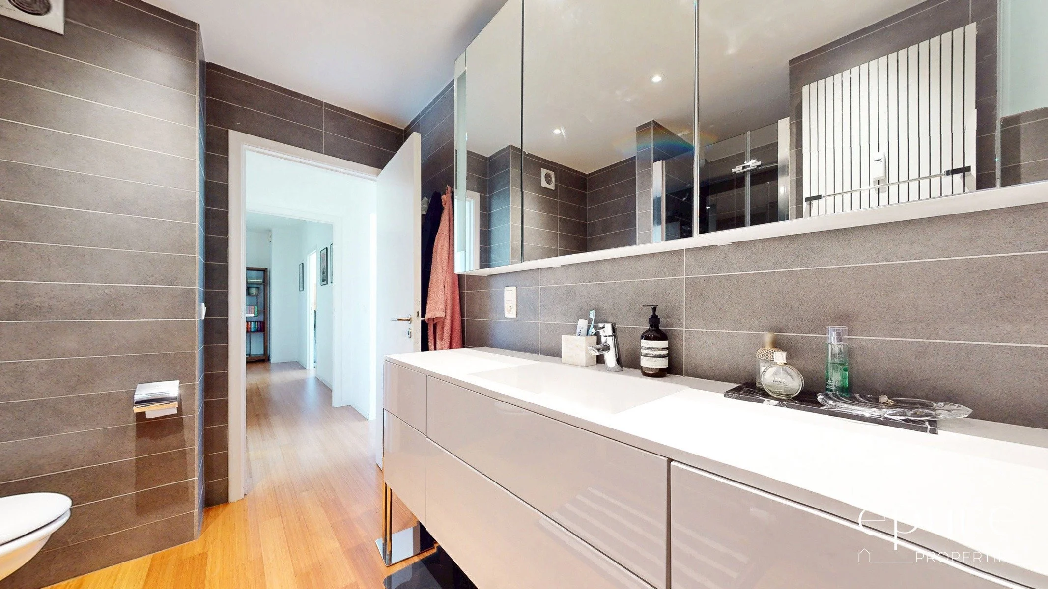 Techniques : Fenêtres double vitrage sur châssis aluminium (arrière: 2009 - avant: 2015); chaufferie collective (2 chaudières au gaz à condensation WEISHAUPT Type WTC GB 120 (2021)); radiateurs avec calorimètres ; vannes thermostatiques; porte blindée; parlophone; toiture rénovée et isolée (2021); électricité conforme; air conditionné dans le séjour et la cuisine (2024); ventilation mécanique assistée dans les salles de bain; double flux décentralisé dans la chambre principale. Stores sur mesure à toutes les fenêtres. Prévoir un rafraichissement (peintures murales, ponçage parquet séjour).
