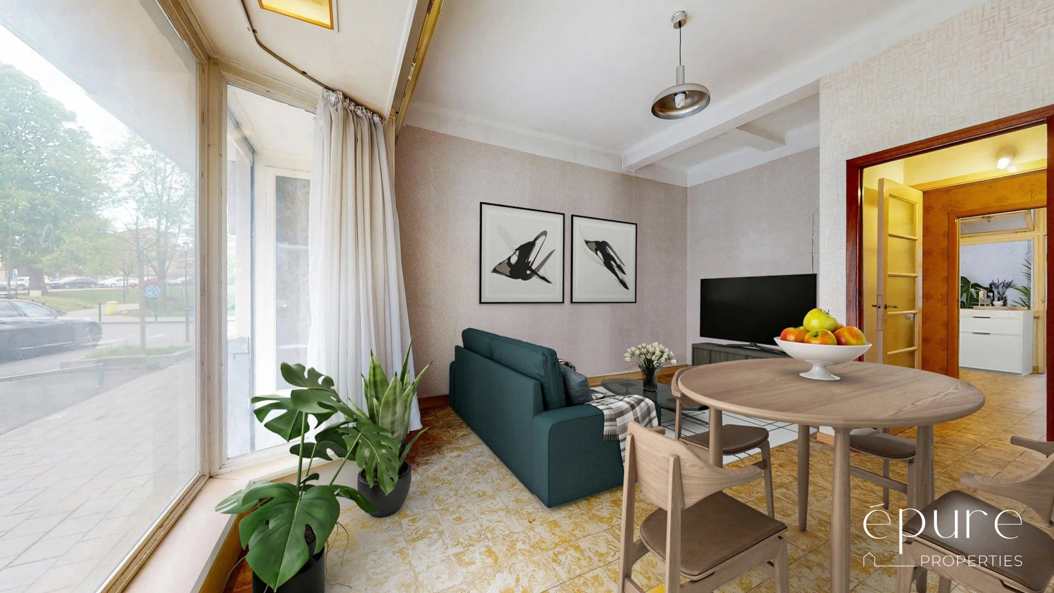 Vue du séjour meublé virtuellement