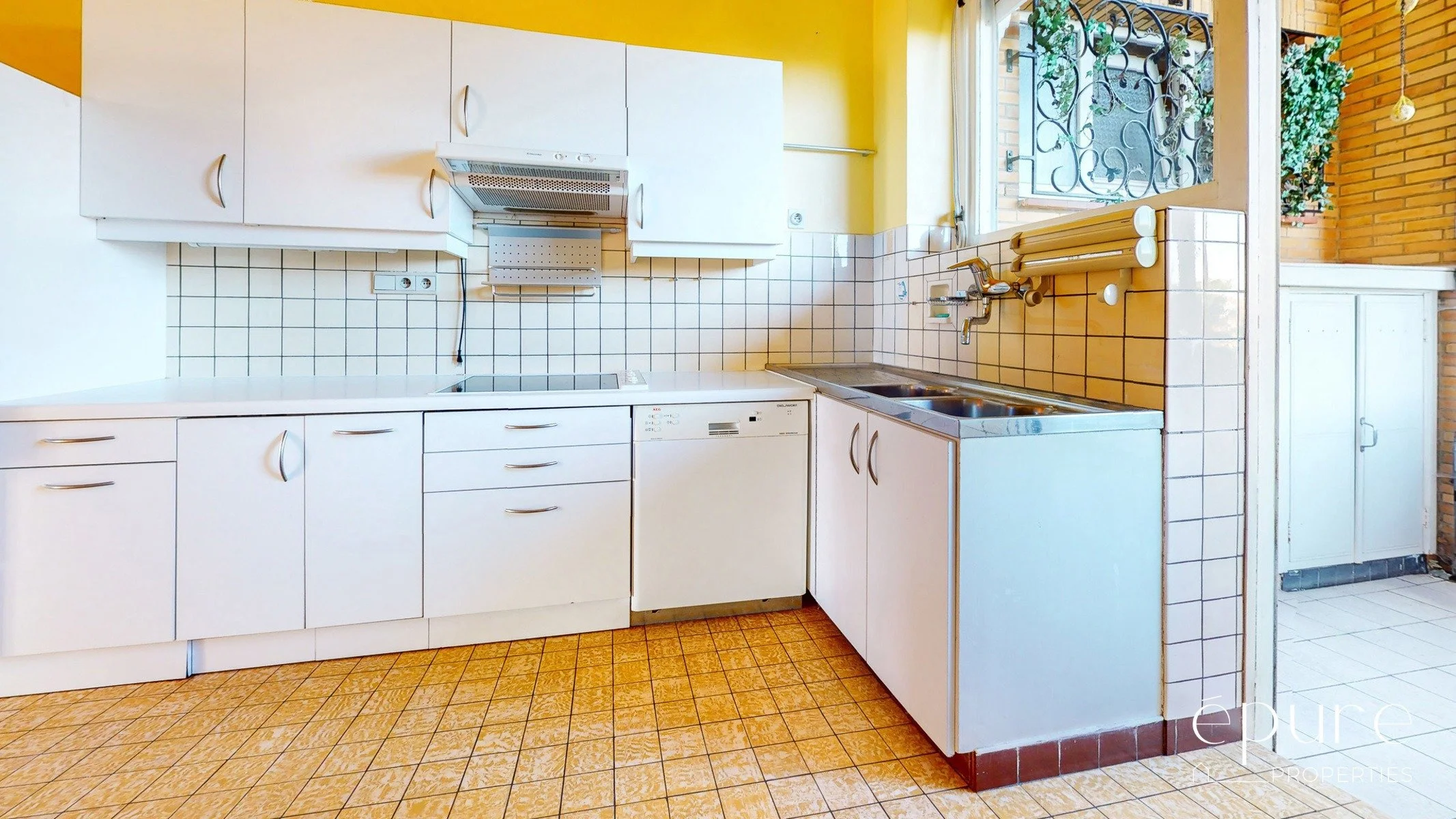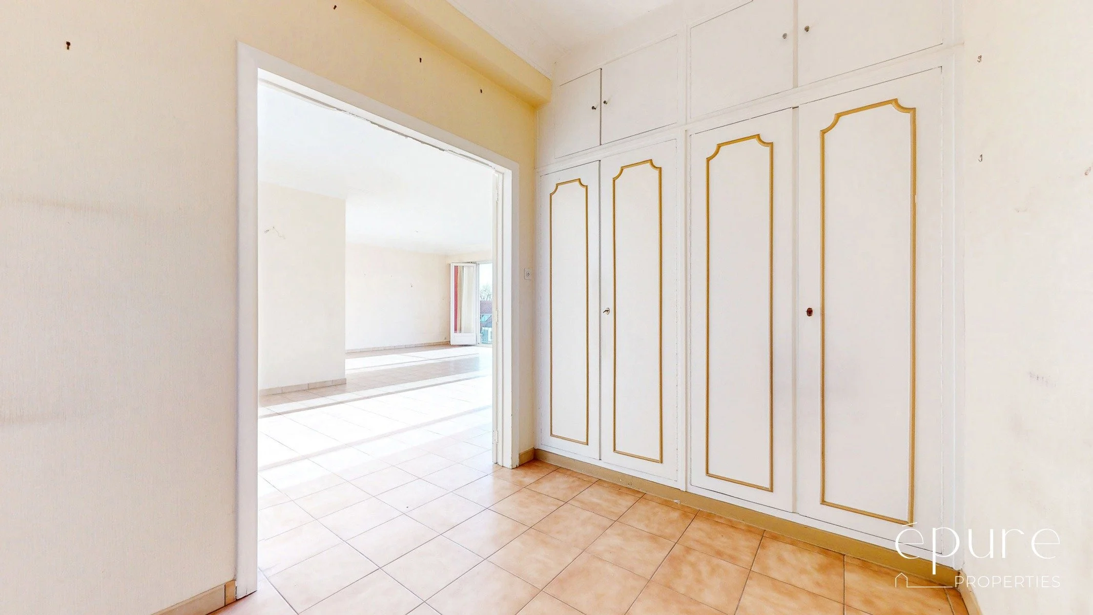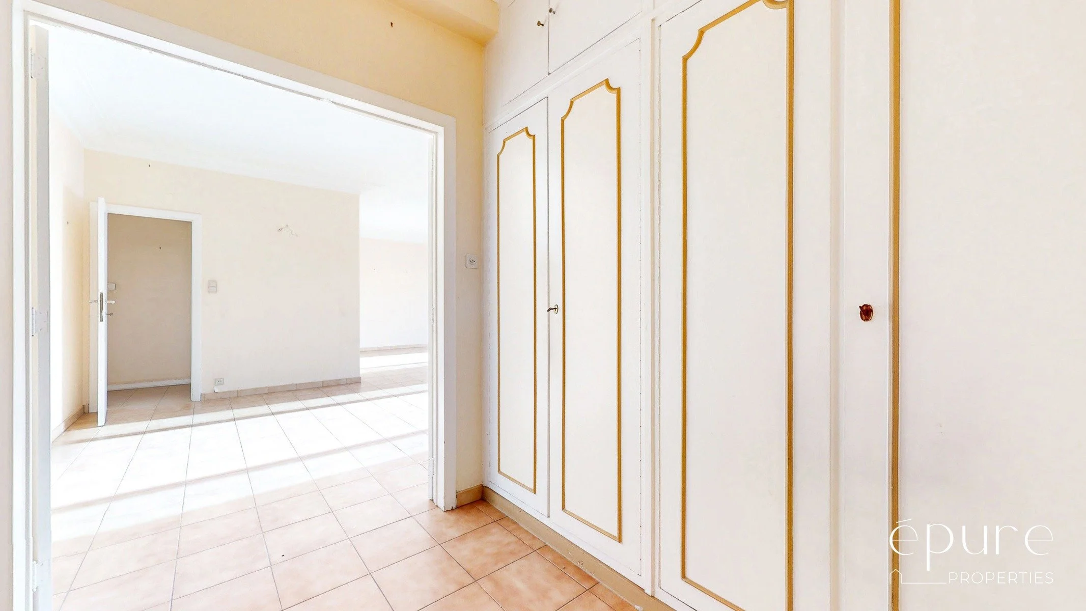 L’appartement nécessite une rénovation totale, en particulier des pièces techniques (cuisine et salles de bain). Carrelage dans toutes les pièces posés sur une structure béton.