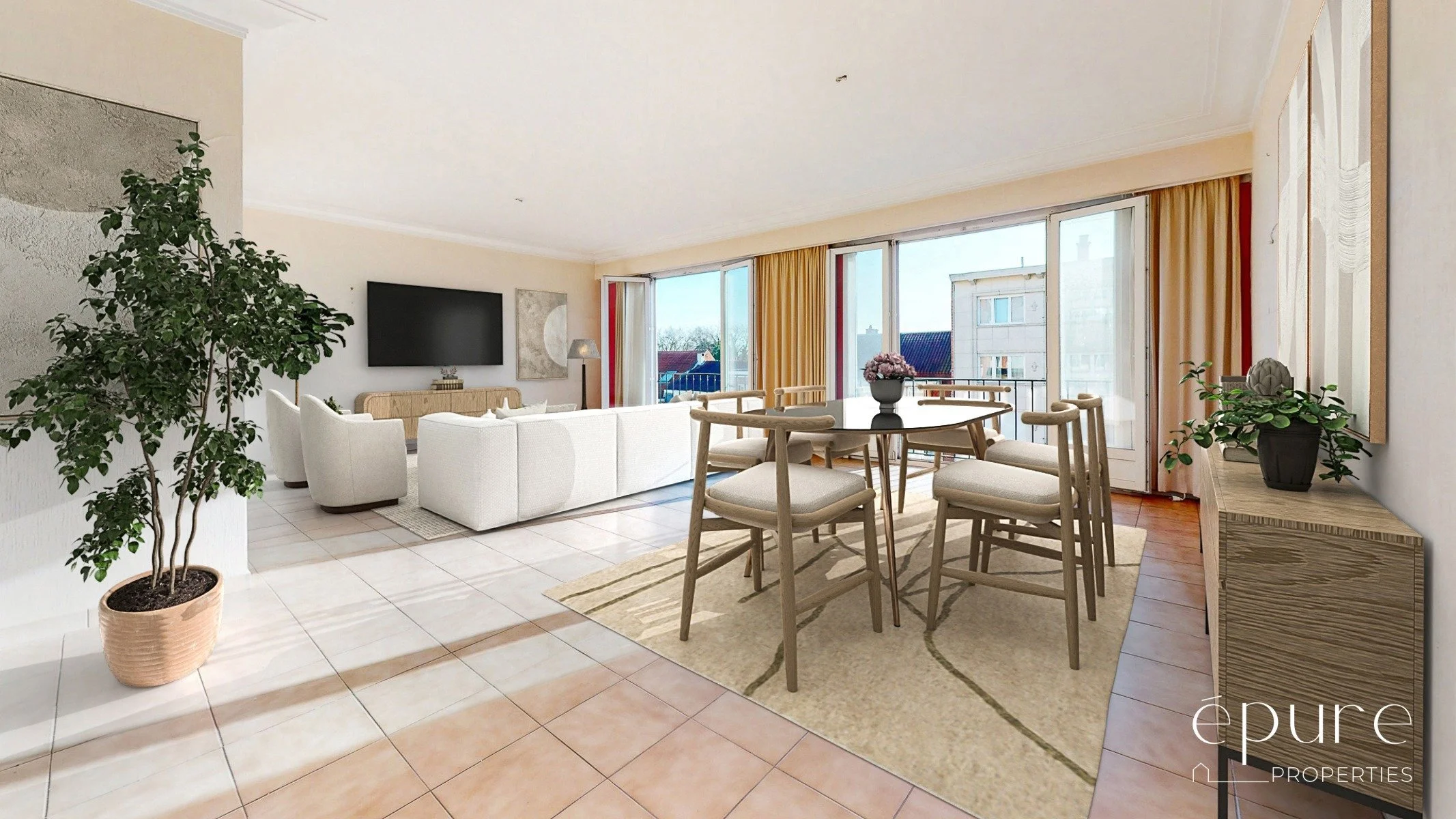 L’appartement mesure 120m2 (selon PEB) et la terrasse totalise +/- 15m2.