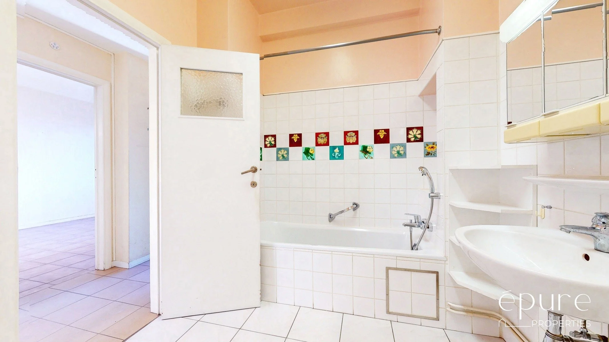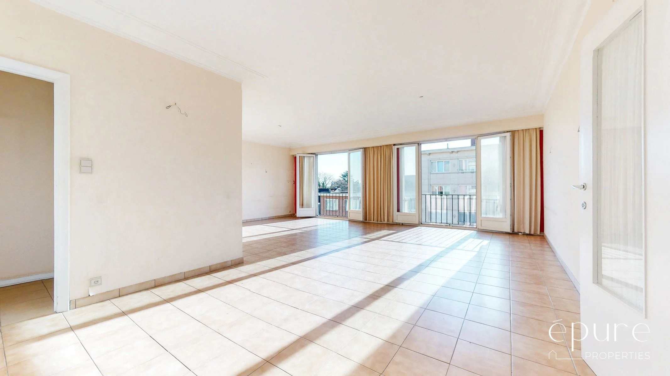 Magnifique luminosité pour le séjour de 57m2, 2 chambres de belle taille (15 et 16m2), agréable terrasse couverte arrière de +/- 15m2. Vue dégagée à l’avant et à l’arrière de l’appartement. Une cave de 7m2et un emplacement de parking une voiture situés au sous-sol de l’immeuble complètent le bien.