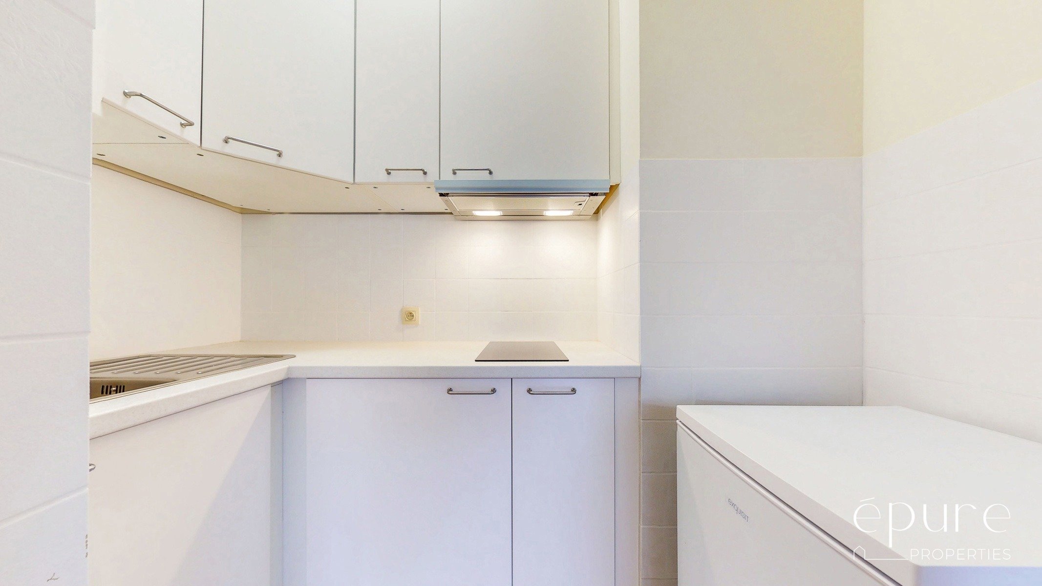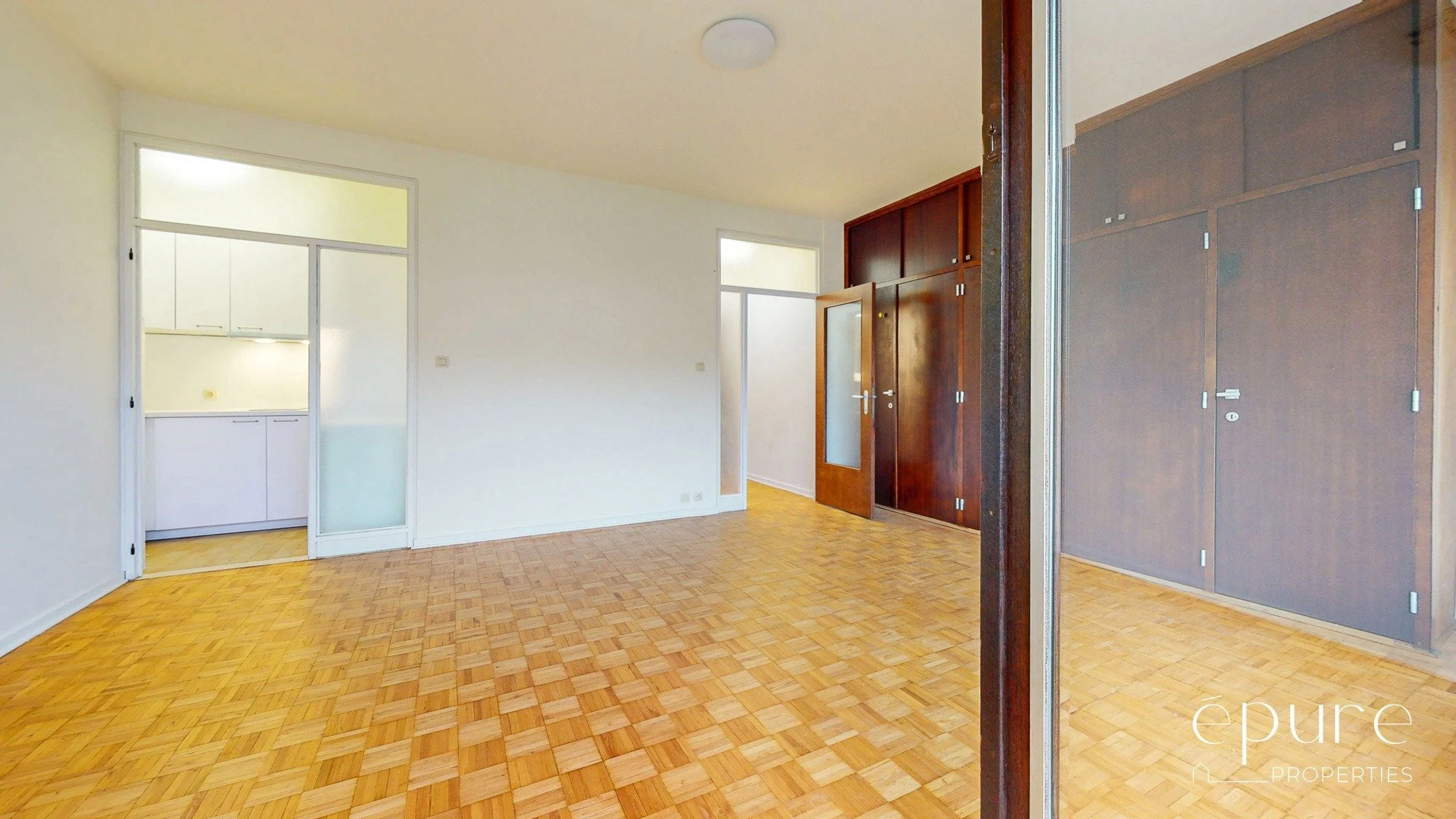 Peace and quiet guaranteed for this rear studio, very nice southwest-facing terrace overlooking the surrounding gardens, favorable orientation (southwest), fully renovated apartment (new kitchen, new paint, sanded and revarnished parquet flooring, new shower partition), … Covered parking space on -1 floor.