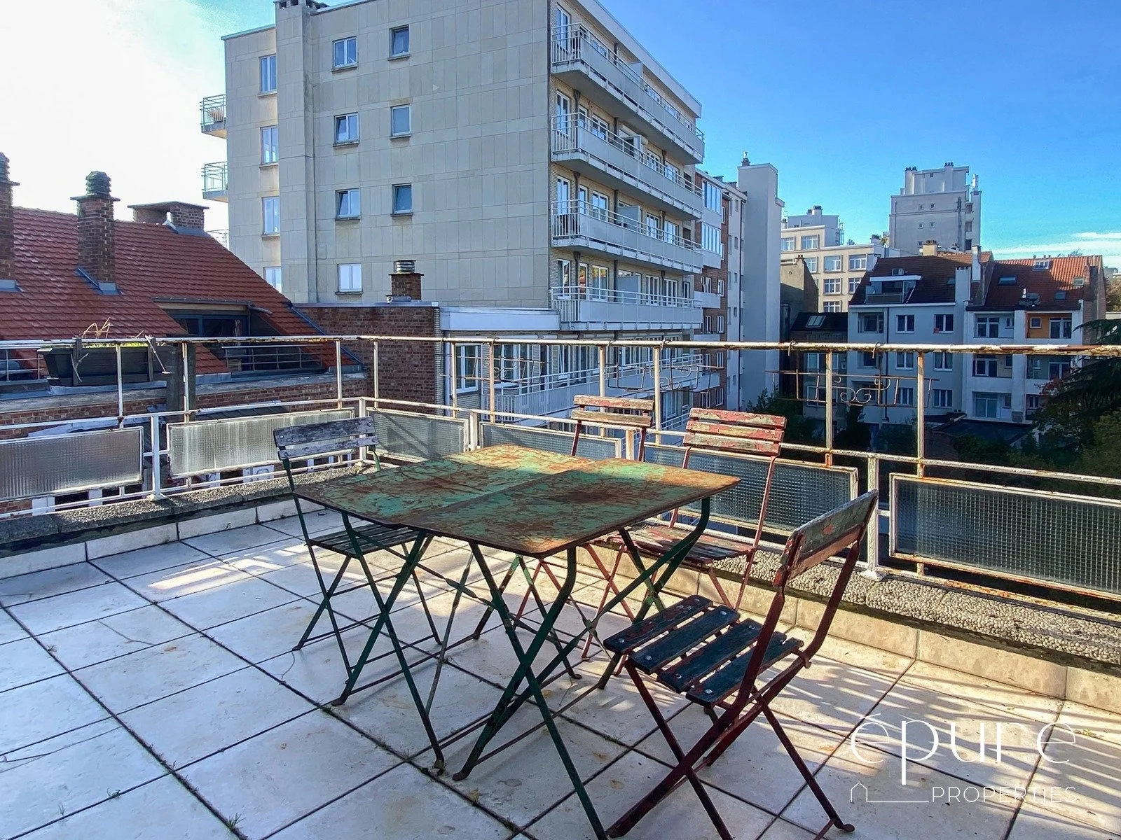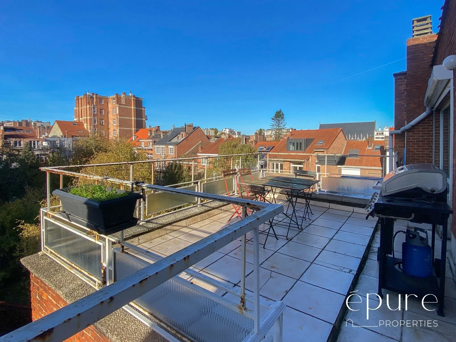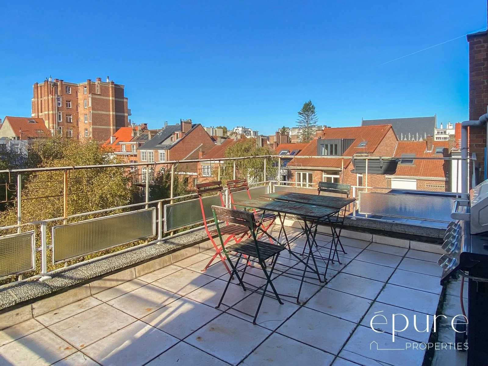 Techniques : triple vitrage récents sur châssis alu (sauf 2 petites fenêtres à l’arrière: double-vitrage), chaudière collective au gaz, parlophone, porte blindée. Frigo et lave-vaisselle disponibles dans l’appartement.