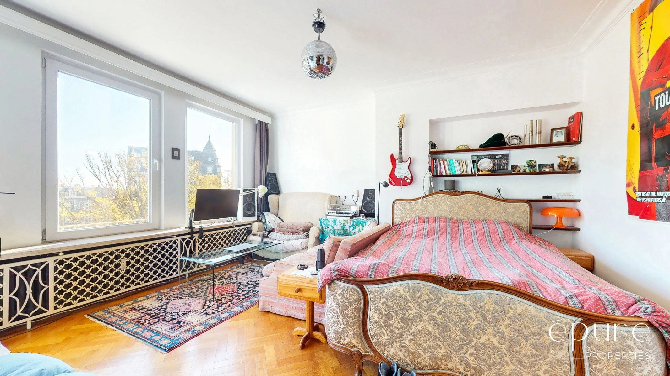 Situé sur le Square Joséphine Charlotte, au 5ème et dernier étage d’un petit immeuble, lumineux appartement de 141m2 (selon PEB) composé de 2 chambres, d’un bureau et d’une magnifique terrasse Ouest de +/-15m2.